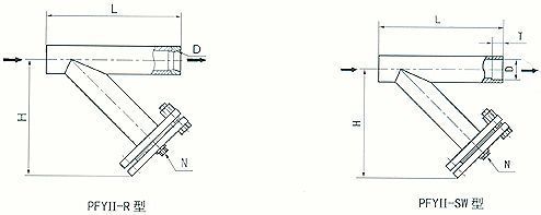(4)Y型焊接錐管螺紋式(PFYII-R型)、承插焊式(PFYII-SW型) (DN15—40,PN≤5.OMPa)